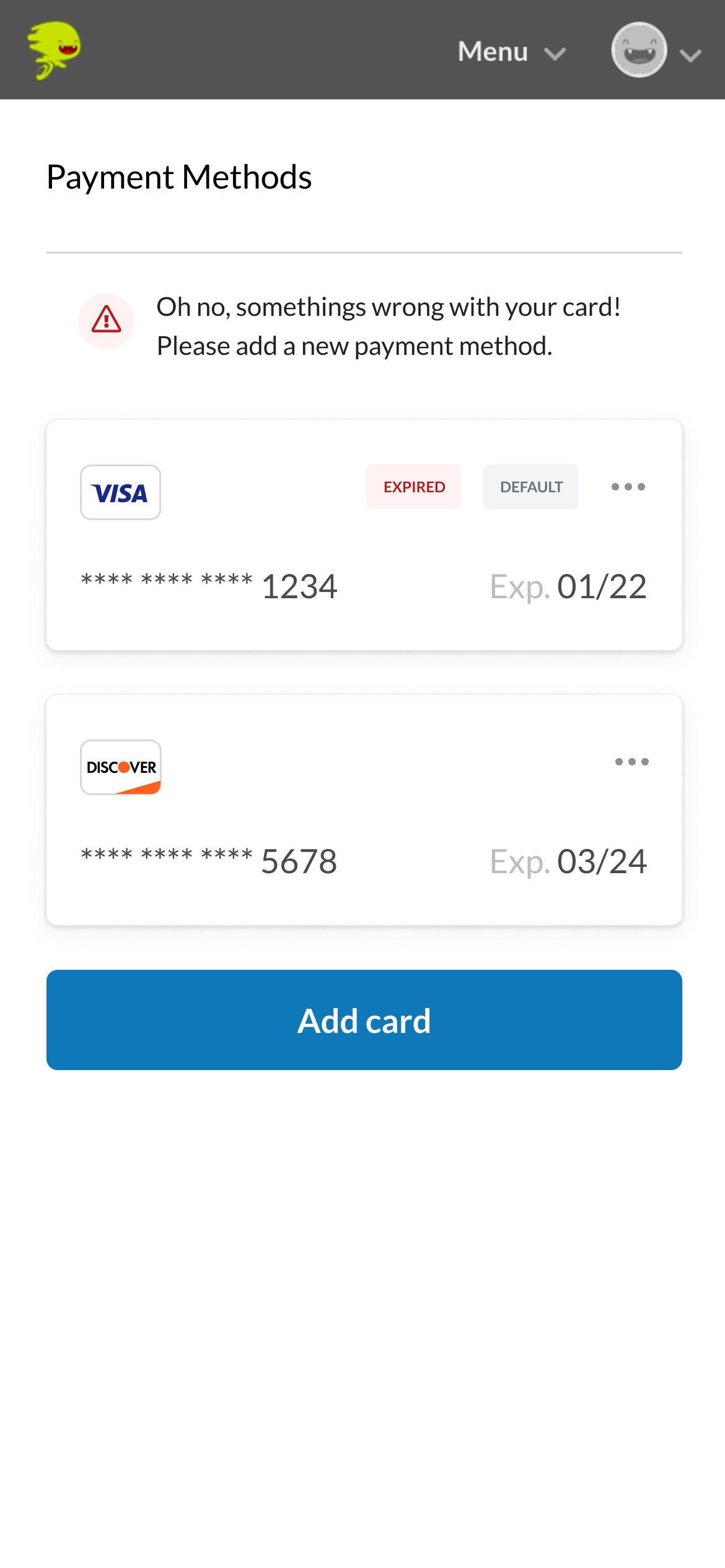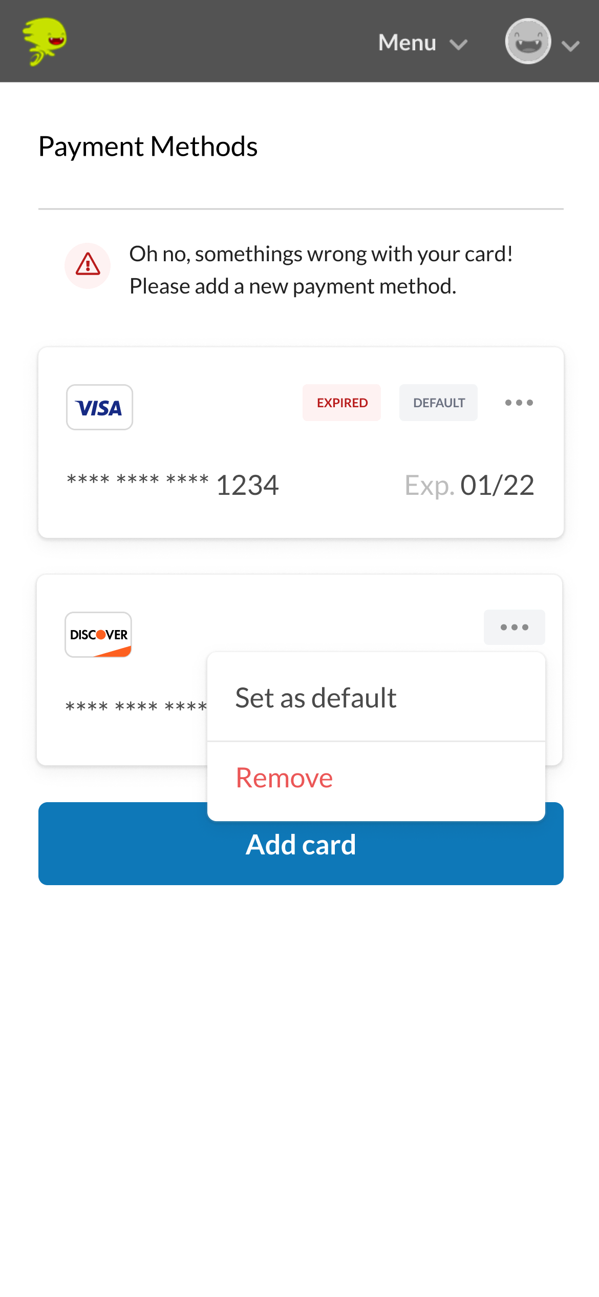 Users can add multiple payment methods to pay for their subscription and one-time purchases. This creates a seamless subscription renewal experience and reduces churn.